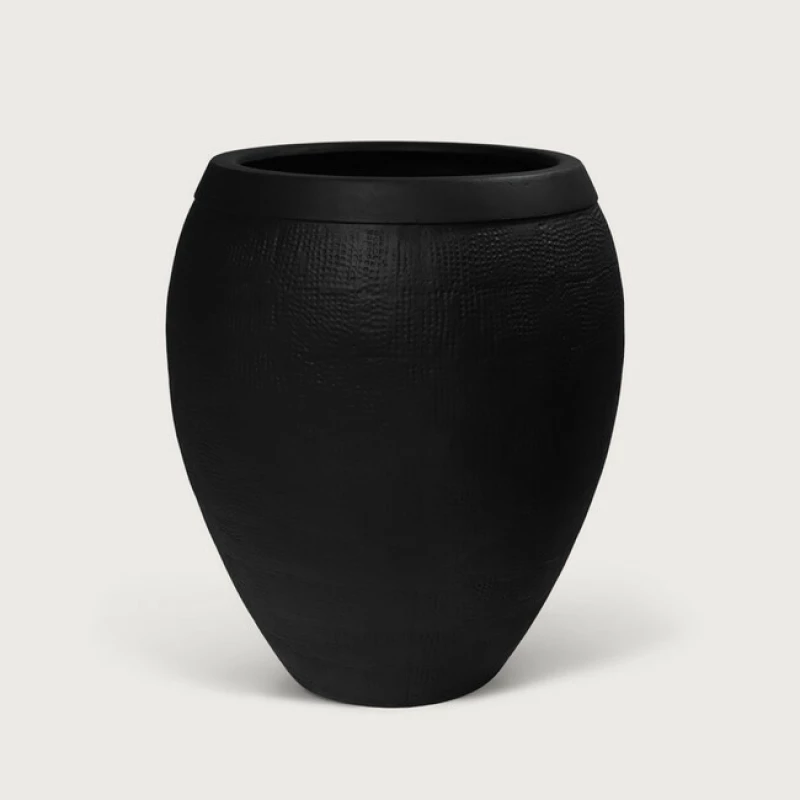 Matně černý povrch květináče Cher Black vytváří luxusní, minimalistický dojem, který se skvěle kombinuje s přírodním dřevem, kamenem i kovovými prvky.