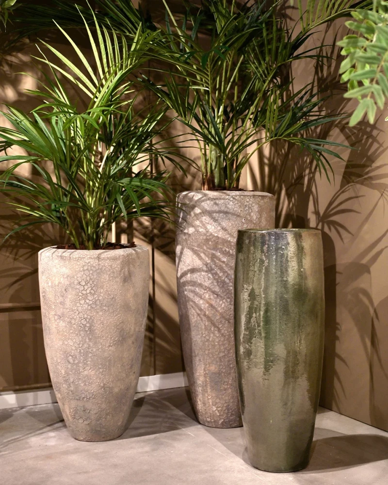 Ručně vyráběný květináč Lela Jade v elegantní zelené barvě přináší do prostoru jedinečný přírodní nádech a sofistikovaný styl. S výškou přes 1 metr působí jako výrazný solitér, který ozdobí moderní terasu, vstupní prostor, zimní zahradu i interiér.