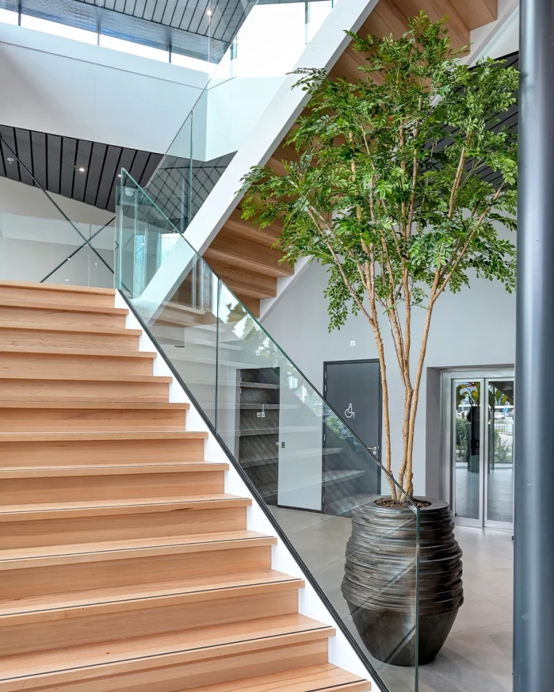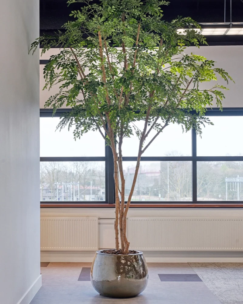 Tento impozantní umělý strom je často využíván v projektech interiérového designu a komerční architektury, kde hraje roli přirozeného a luxusního prvku.