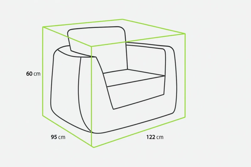 Přesný střih krytu zajišťuje, že perfektně padne na většinu zahradních křesel. Kryt se snadno nasazuje i sundává a umožňuje jednoduchou manipulaci a skladování.