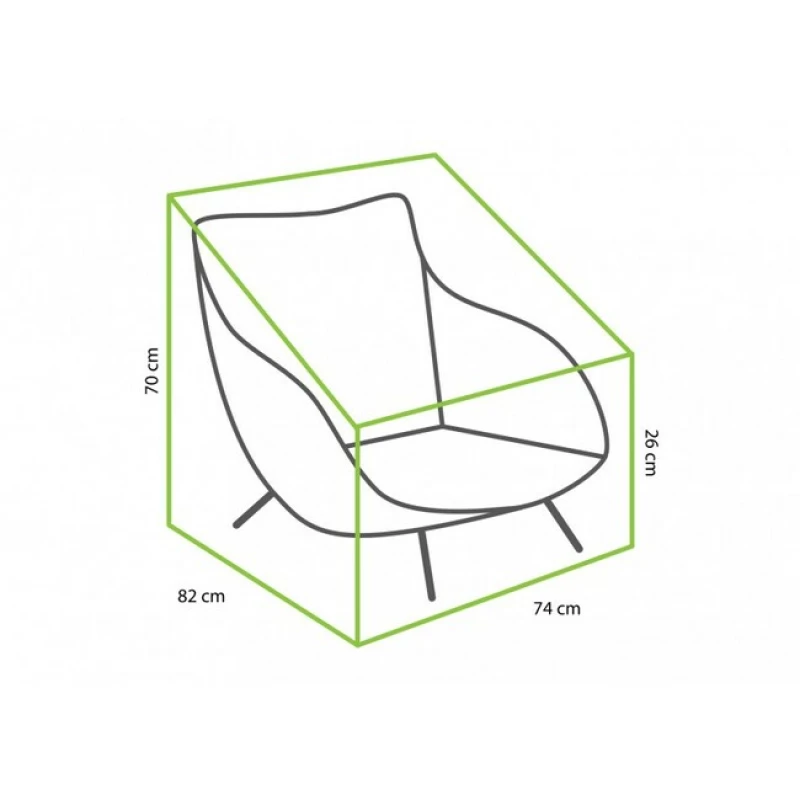 Ochranný kryt na zahradní křeslo Tierra Outdoor TO-5368 (74x82x70/26 cm). Voděodolný a prodyšný materiál s UV ochranou. Spolehlivá ochrana a dlouhá životnost nábytku.