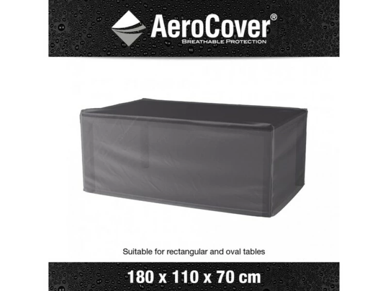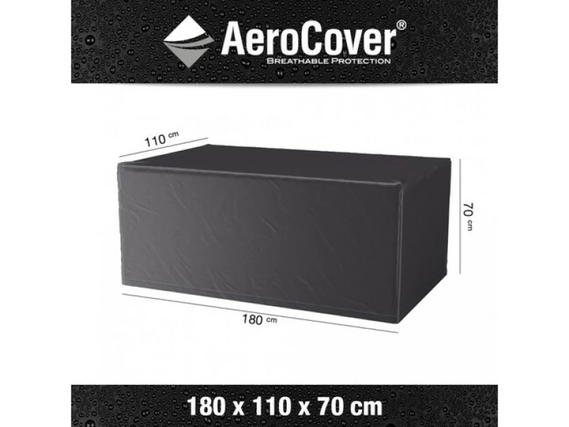 Kryt AeroCover® 7923 (180 × 110 × 70 cm) z voděodolného a prodyšného RIPSTOP polyesteru chrání menší zahradní sestavy a lavice před deštěm, UV zářením, prachem i plísní. Pevné uchycení a úložný vak v balení.