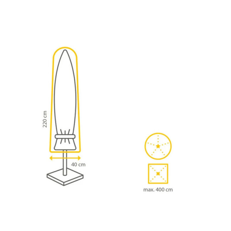 Ochranný kryt na slunečníky do 400x400 cm chrání před UV zářením, deštěm a prachem. Odolný materiál, snadné použití a univerzální rozměr. Udržte svůj slunečník čistý a v perfektním stavu po celý rok.
