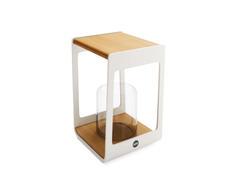 Stojan na svíčku SUNS Zara je stylová volba pro umístění svíčky na Vaší zahradě či terase. Stojanem na svíčku SUNS Zara skvěle doplníte Vaši zahradní sedací soupravu a vytvoříte dokonalou a útulnou atmosféru! Rám z hliníku bílé barvy propouští dostatek světla. Kombinace hliníku a teakového dřeva působí velmi jemně a přirozeně, a dodává stojanu elegantní vzhled, který jistě upoutá pozornost. Barevné provedení naprosto skvěle ladí s veškerým nábytkem z kolekce SUNS. Ideální doplněk k Vašemu zahradnímu luxusnímu nábytku SUNS!