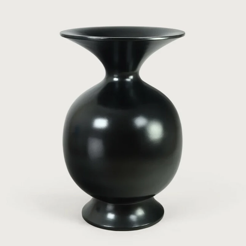 Tvar „belly“ (bříško) zajišťuje harmonické proporce, zatímco perleťově černý povrch dodává váze luxusní a jedinečný charakter. Její sofistikovaný vzhled skvěle doplňuje moderní i klasické interiéry a vytváří elegantní kontrast s jinými materiály, jako je dřevo, sklo nebo kámen.