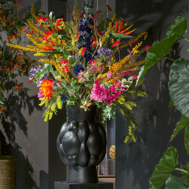 Váza Granaat XL Black je vhodná pro živé, suché i umělé květiny. Díky vnitřnímu průměru 20 cm poskytuje dostatek prostoru pro větší květinové kompozice. Lze ji použít i jako samostatný dekorativní solitér, který přirozeně přitáhne pozornost.