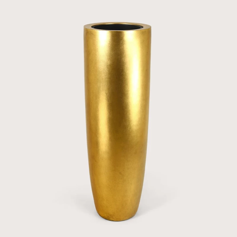 Tento vysoký květináč upoutá pozornost svým zlatým povrchem, který dodává interiéru nebo exteriéru nádech luxusu a elegance. Díky své výšce 150 cm je ideální pro vysoké rostliny, palmy nebo jako samostatný dekorativní prvek. Materiál polyresin, ze kterého je květináč vyroben, zajišťuje jeho odolnost vůči povětrnostním vlivům a dlouhou životnost.