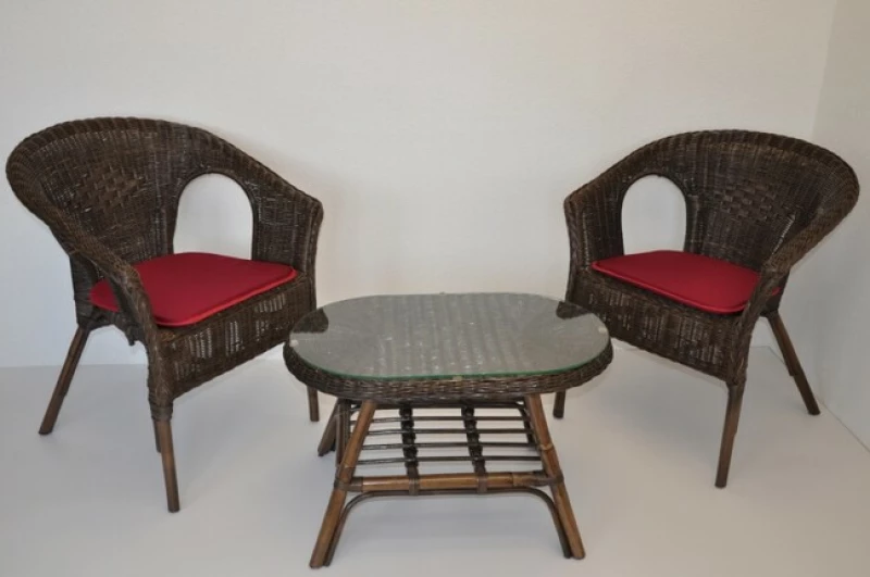 Souprava Fabion obsahuje dvě pohodlná křesla a stolek se skleněnou deskou. V ceně je zahrnuta také kompletní sada polstrů podle fotografie, které zajišťují příjemné a měkké sezení. Hnědý přírodní ratan působí teple a harmonicky, snadno zapadne do většiny interiérů a přinese do prostoru přírodní atmosféru.