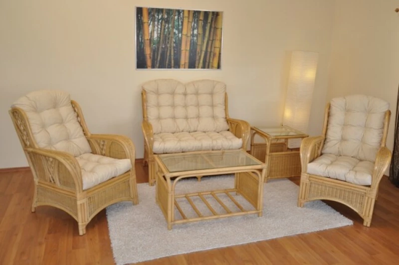 Ratanová sedací souprava OLIVER natural patří mezi nejoblíbenější a nejprodávanější soupravy z přírodního ratanu. Je vyrobena ve světlém medovém odstínu, který působí elegantně, teple a dokonale se hodí do moderních i klasických interiérů. Díky kvalitní konstrukci, pevnému výpletu a nadčasovému designu je tato souprava ideální volbou pro obývací pokoje, zimní zahrady nebo kryté terasy.