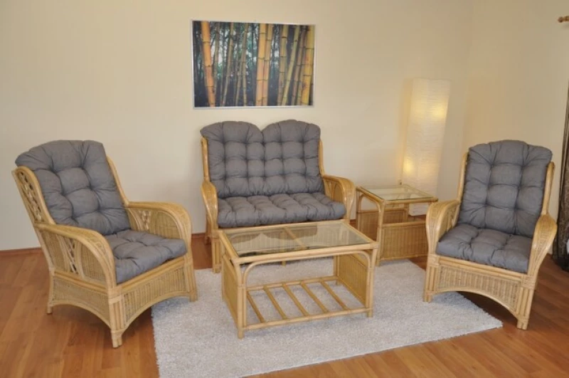 Ratanová sedací souprava OLIVER natural patří mezi nejoblíbenější a nejprodávanější soupravy z přírodního ratanu. Je vyrobena ve světlém medovém odstínu, který působí elegantně, teple a dokonale se hodí do moderních i klasických interiérů. Díky kvalitní konstrukci, pevnému výpletu a nadčasovému designu je tato souprava ideální volbou pro obývací pokoje, zimní zahrady nebo kryté terasy.