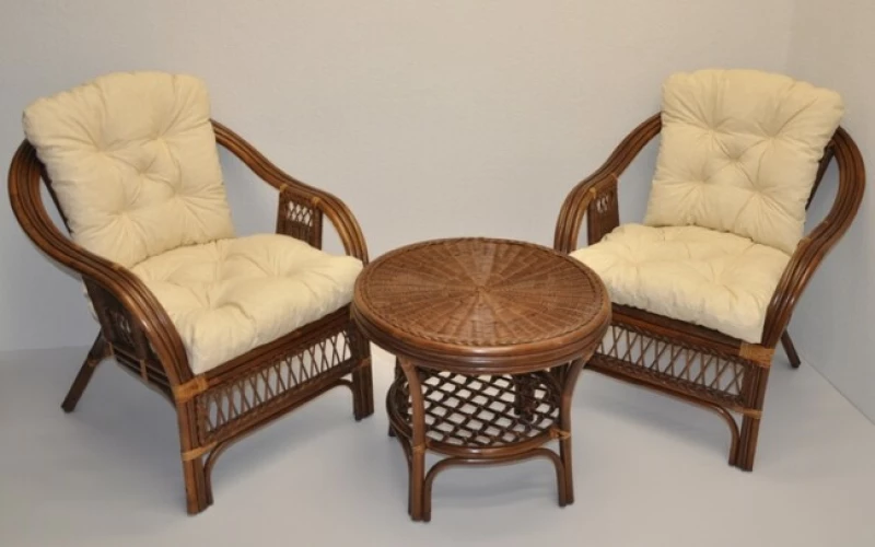 Ratanová sedací souprava Rio De Janeiro 2+1 v hnědé barvě je vyrobena z přírodního ratanu z masivních ratanových tyčí. Trojitá konstrukce na klíčových místech zajišťuje vysokou pevnost, stabilitu a dlouhou životnost. Souprava zahrnuje dvě prostorná křesla, stolek se skleněnou deskou a sadu komfortních polstrů.