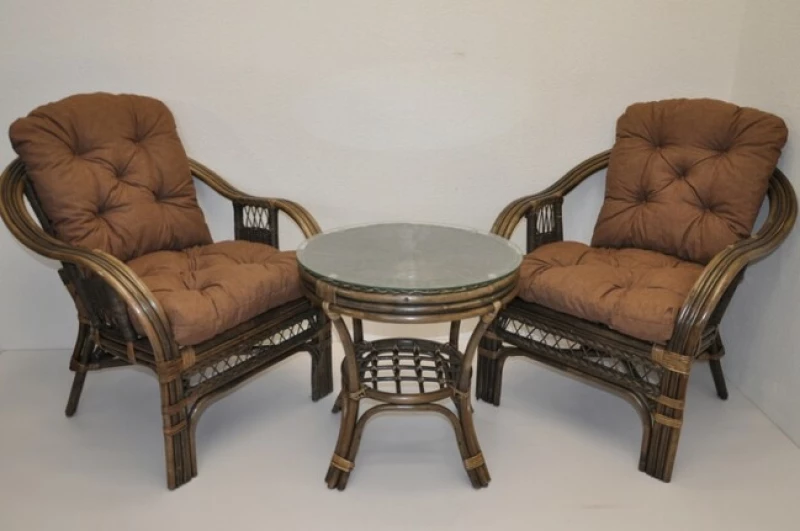 Ratanová sedací souprava Rio De Janeiro 2+1 v hnědé barvě je vyrobena z přírodního ratanu z masivních ratanových tyčí. Trojitá konstrukce na klíčových místech zajišťuje vysokou pevnost, stabilitu a dlouhou životnost. Souprava zahrnuje dvě prostorná křesla, stolek se skleněnou deskou a sadu komfortních polstrů.