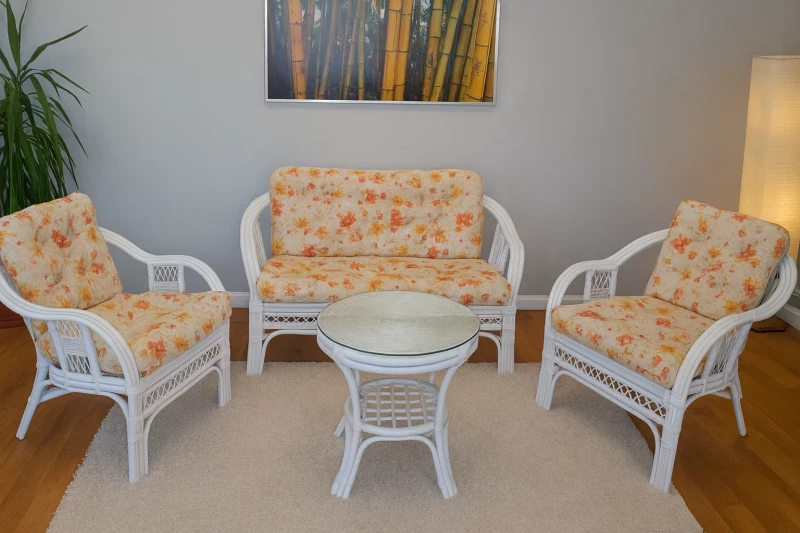 Ratanová sedací souprava Rio de Janeiro – bílá | Elegantní přírodní ratan pro interiér a zimní zahrady