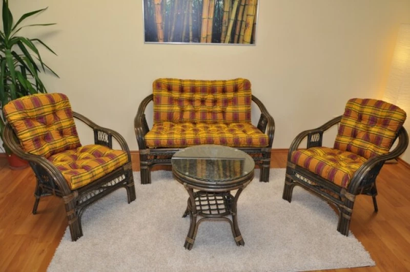 Ratanová sedací souprava Rio de Janeiro patří mezi klasiku z přírodního ratanu, která vyniká vysokou pevností, kvalitním zpracováním a nadčasovým designem. Konstrukce je vyrobena z masivních ratanových tyčí, přičemž hlavní nosné části jsou vedeny v trojitém provedení, což výrazně zvyšuje stabilitu i životnost nábytku.