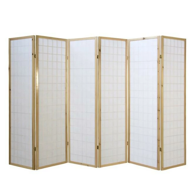 Šestidílný japonský paraván HS 190 s bledým přírodním dřevěným rámem a výplní z bílého rýžového papíru je nadčasovým doplňkem, který vnáší do interiéru klid, rovnováhu a orientální atmosféru.