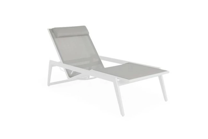Výplň tvoří kvalitní textilen (polyetylenová tkanina), která je pružná, prodyšná a vysoce odolná vůči vlhkosti, UV záření i teplotním změnám. Díky kombinaci hliníku a textilenu je lehátko zcela bezúdržbové, snadno se čistí a může zůstat venku po celý rok.