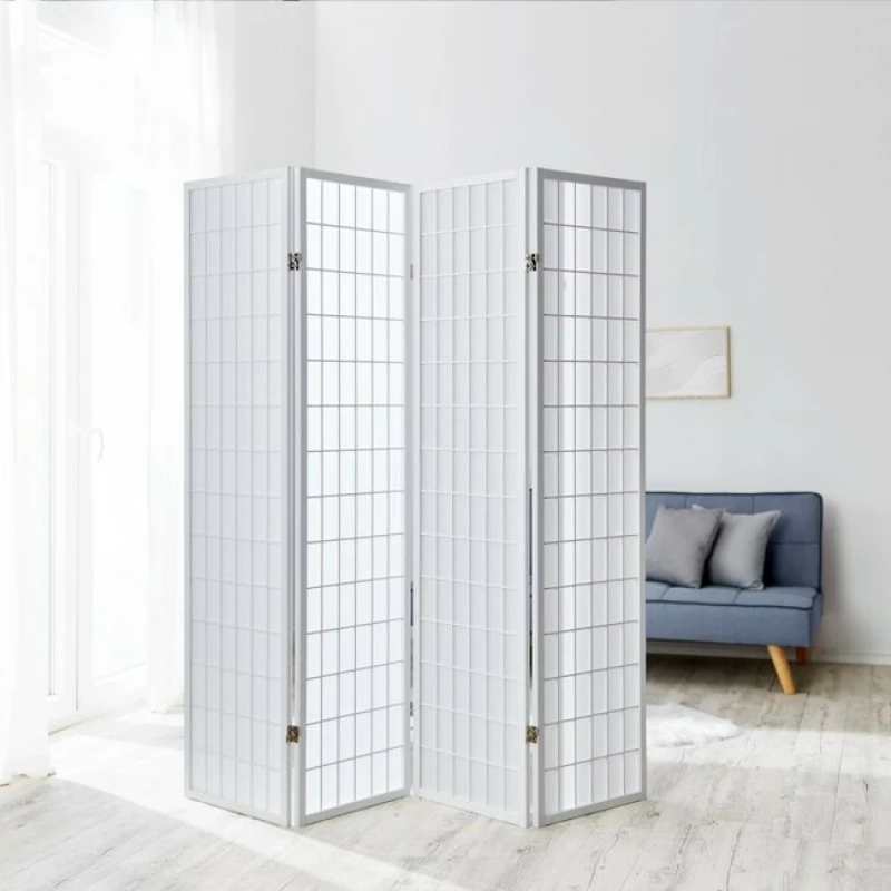 Japonský paraván 4dílný bílý - elegantní dělící stěna s rýžovým papírem