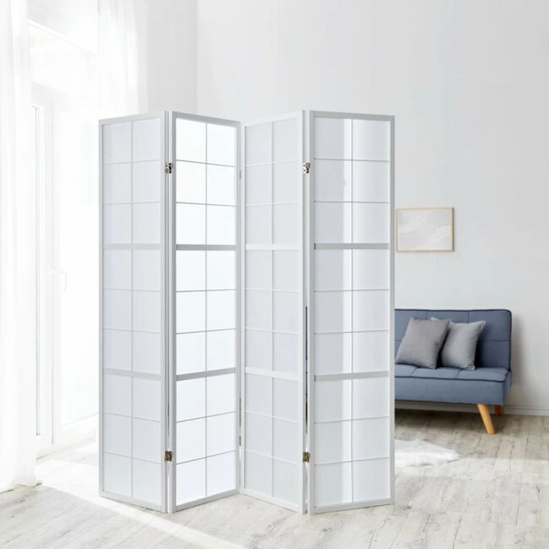 Japonský paraván 4dílný HS 438 bílý s rýžovým papírem shoji - elegantní dělící stěna do interiéru