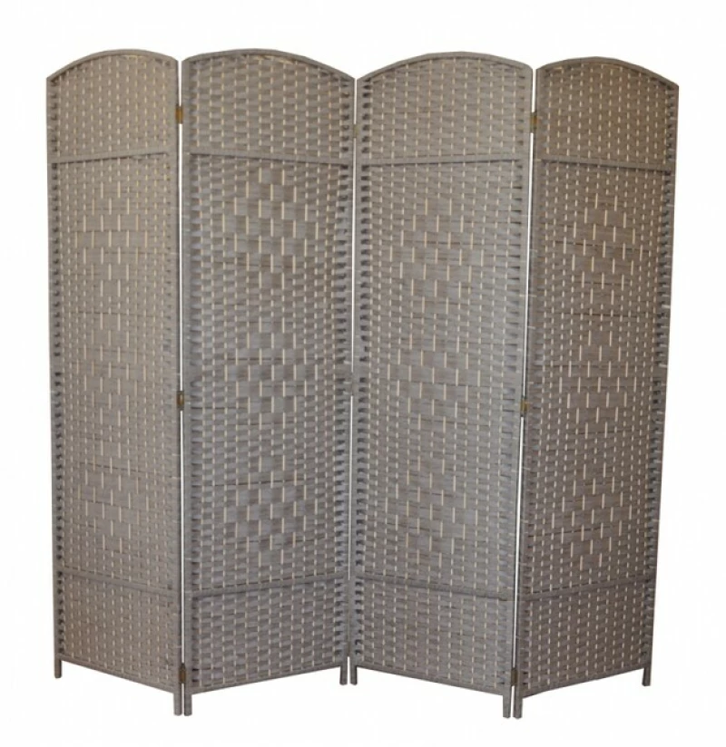 Čtyřdílný paraván ve světle šedém odstínu s dřevěným rámem a výpletem z mořské trávy zakryje prostor až 2 m. Skvělý do domácností, wellness i salonů. Výška 180 cm, šířka 4×50 cm, tloušťka 2,5 cm.