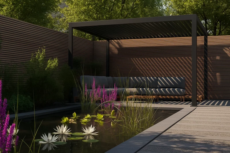 Volně stojící pergola má plochou střechu odolnou proti slunci a vodě. Po úplném zavření lamel se střecha stane vodotěsnou. Voda je odvedena přes okapový systém integrovaný do struktury nohou. Lamely jsou uzpůsobeny pro odtok vody do strany. Díky kvalitním materiálům a konstrukci není nutná prakticky žádná údržba.