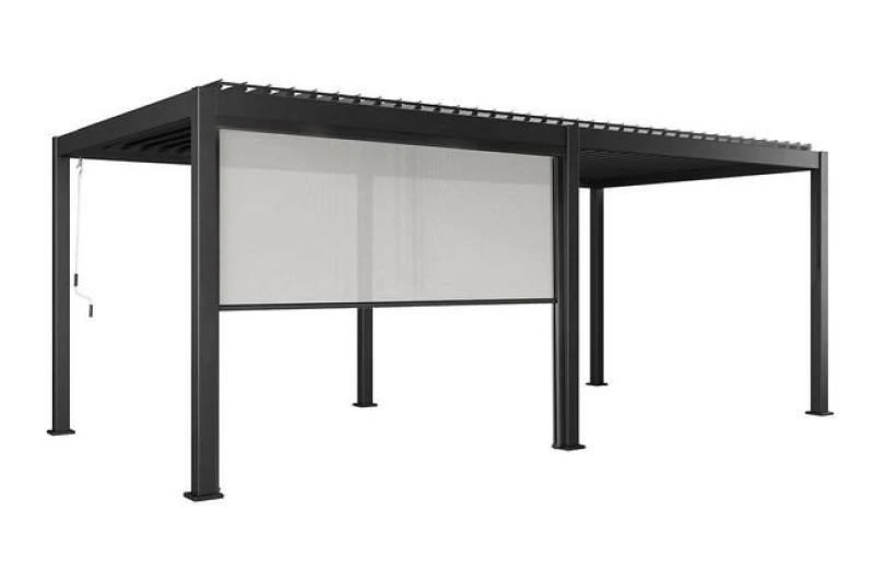 Stínící roleta ROTA/ALVARO 300 cm v antracitu z prémiového Textilenu. Odolná do síly větru 4 Bf, ochrana před plísněmi, UV zářením a extrémními teplotami. Kompatibilní s pergolami ROTA i ALVARO. Elegantní design s minimální údržbou.