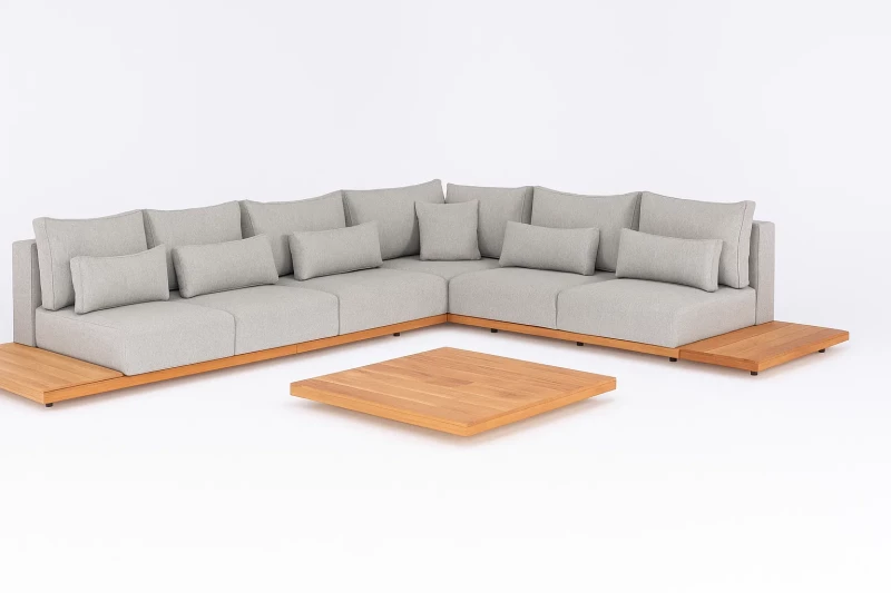 Luxusní zahradní souprava SUNS ASPEN II z teaku soft grey kombinuje elegantní design, odolné materiály a maximální pohodlí. Rychleschnoucí pěna a potahy Sunproof® zajišťují komfort a styl pro moderní venkovní relax.
