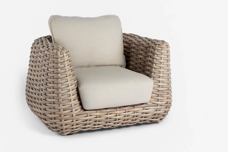 Rám křesla je vyroben z odolného hliníku, který zaručuje dlouhou životnost a snadnou údržbu. Oplet z XXL syntetického vlákna o tloušťce 20 mm připomíná přírodní ratan, ale nabízí výrazně vyšší odolnost vůči povětrnostním vlivům i UV záření. Pískovo-béžové provedení Kubu dodává křeslu příjemný letní vzhled a skvěle ladí s ostatním zahradním nábytkem.