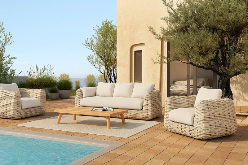 Polštáře a sedáky jsou vyrobeny z prémiové outdoorové látky Sunproof Olefín, která je měkká, rychleschnoucí a barevně stálá. Poskytuje maximální komfort při sezení a zachovává si elegantní vzhled po mnoho let. Pro delší životnost doporučujeme polštáře skladovat v suchu při delším nepoužívání.