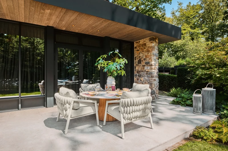 Tento koncept vytváří harmonickou rovnováhu mezi lounge posezením a klasickým stolováním – ideální pro moderní životní styl.
