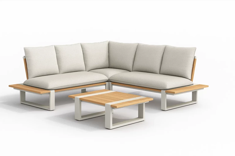 Zahradní souprava Seto 4-místná od Tierra Outdoor kombinuje hliníkový rám s certifikovaným teakem a polyesterovým lanem. Obsahuje 2 dvoumístné pohovky, rohový díl a stolek. Polštáře Olefin Swiss 95% vodoodpudivé. Rozměry 247x247 cm. 3letá záruka.