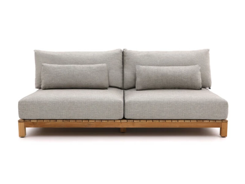 Luxusní 2-místná zahradní pohovka SUNS Portofino (214×107×86 cm) s teakovou základnou a hliníkovými opěradly. Fast Dry Foam polštáře s prémiovou látkou Sunproof®. Inovativní fixace polštářů, modulární systém. Dostupná v Soft Pink a Soft Grey.