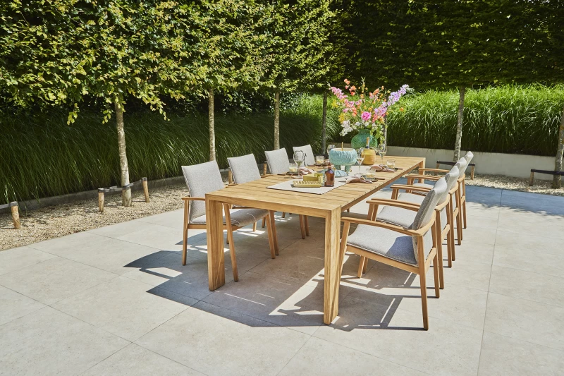 Teakový jídelní stůl SUNS Erice – dokonalé spojení elegance, odolnosti a přírodního stylu