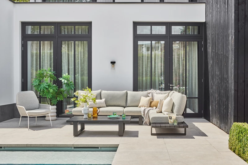 Potahy jsou zhotoveny z prémiové tkaniny Sunproof®, která má certifikaci OEKO-TEX® a splňuje přísné ekologické standardy. Tato látka je vodoodpudivá, UV odolná, plísniodolná a příjemná na dotek – ideální pro každodenní venkovní použití.