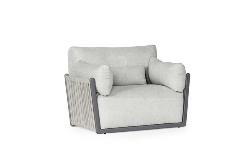 Zahradní křeslo Sorrento (114×96×90 cm) s hliníkovým rámem a provazovým pletením. Fast Dry Foam rychleschnoucí pěna, vodoodpudivá látka Sunproof® odolná UV.