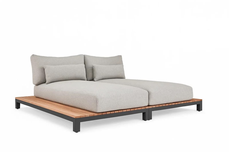 Zahradní postel SUNS EVORA DAYBED 229×200×84 cm - Luxusní venkovní lehátko s hliníkovým rámem a teakovou platformou