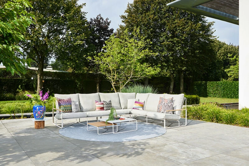 Zahradní rohový set SUNS Merano je ideální volbou pro velké terasy, kde hledáte luxusní a odolný venkovní nábytek s nadčasovým minimalistickým designem.