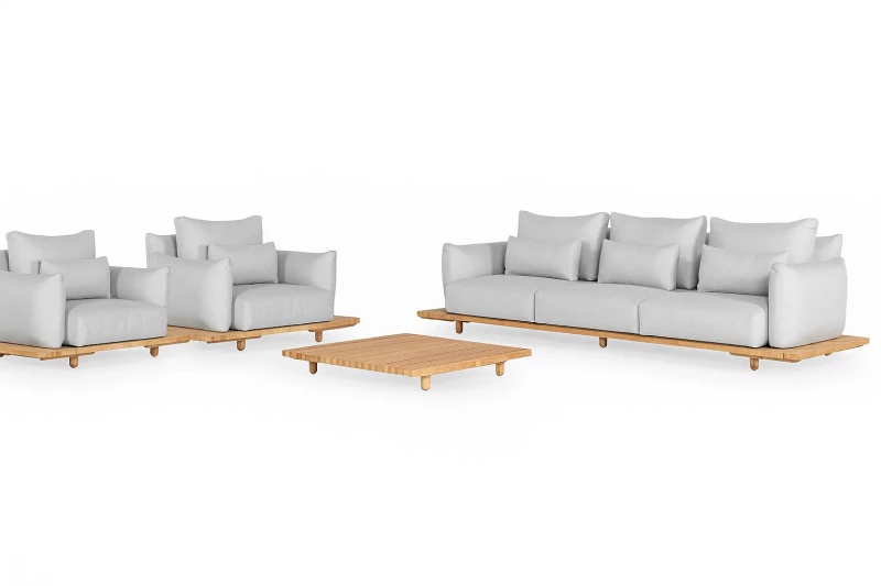 Zahradní sedací souprava SUNS BORA soft grey přináší do vašeho exteriéru svěží atmosféru přímořského stylu. Svým vyváženým spojením přírodního teaku, masivních tvarů a moderních detailů působí současně robustně i elegantně. Tento luxusní zahradní set je navržen tak, aby nabízel komfortní posezení pro rodinu i větší společnost, a stal se estetickým středem každé terasy či zahrady.