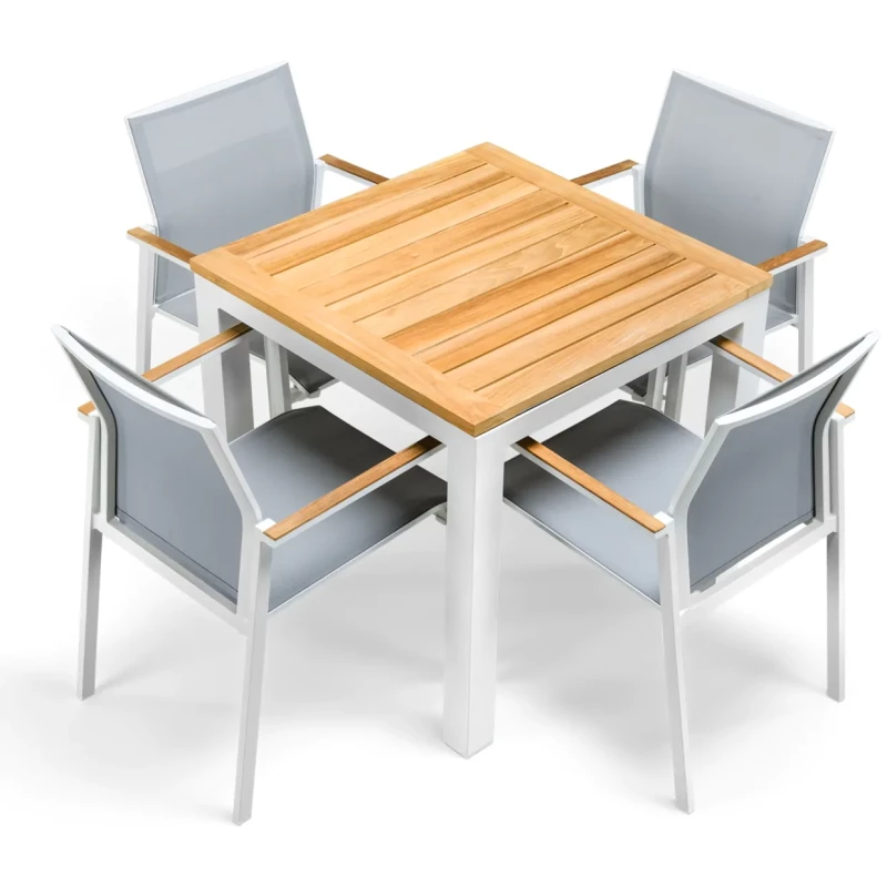 Díky kombinaci masivní teakovou deskou a pevným hliníkovým rámem působí elegantně, odolně a zároveň lehce. Tento model je ideální volbou pro terasy, zahrady i venkovní jídelní prostory, kde dominují kvalita a styl.