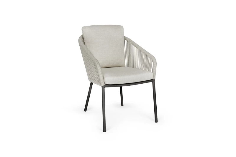 Konstrukce židle je vyrobena z pevného hliníkového rámu, který zajišťuje stabilitu, lehkost a dlouhou životnost. Rám je opleten prémiovým akrylovým lanem SUNS Rope, které je vysoce odolné vůči povětrnostním vlivům, UV záření i vlhkosti.