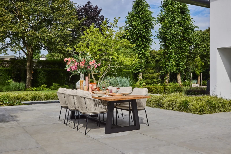 Sedák a opěrka jsou opletené prémiovým akrylovým lanem v designu „rybí kosti“, které je odolné vůči povětrnostním vlivům i UV záření. Komfortní polštáře s výplní Quick Dry Foam® rychle schnou a zachovávají si tvar. Potahy z látky Sunproof® (certifikace OEKO-TEX) jsou voděodolné, stálobarevné a příjemné na dotek.